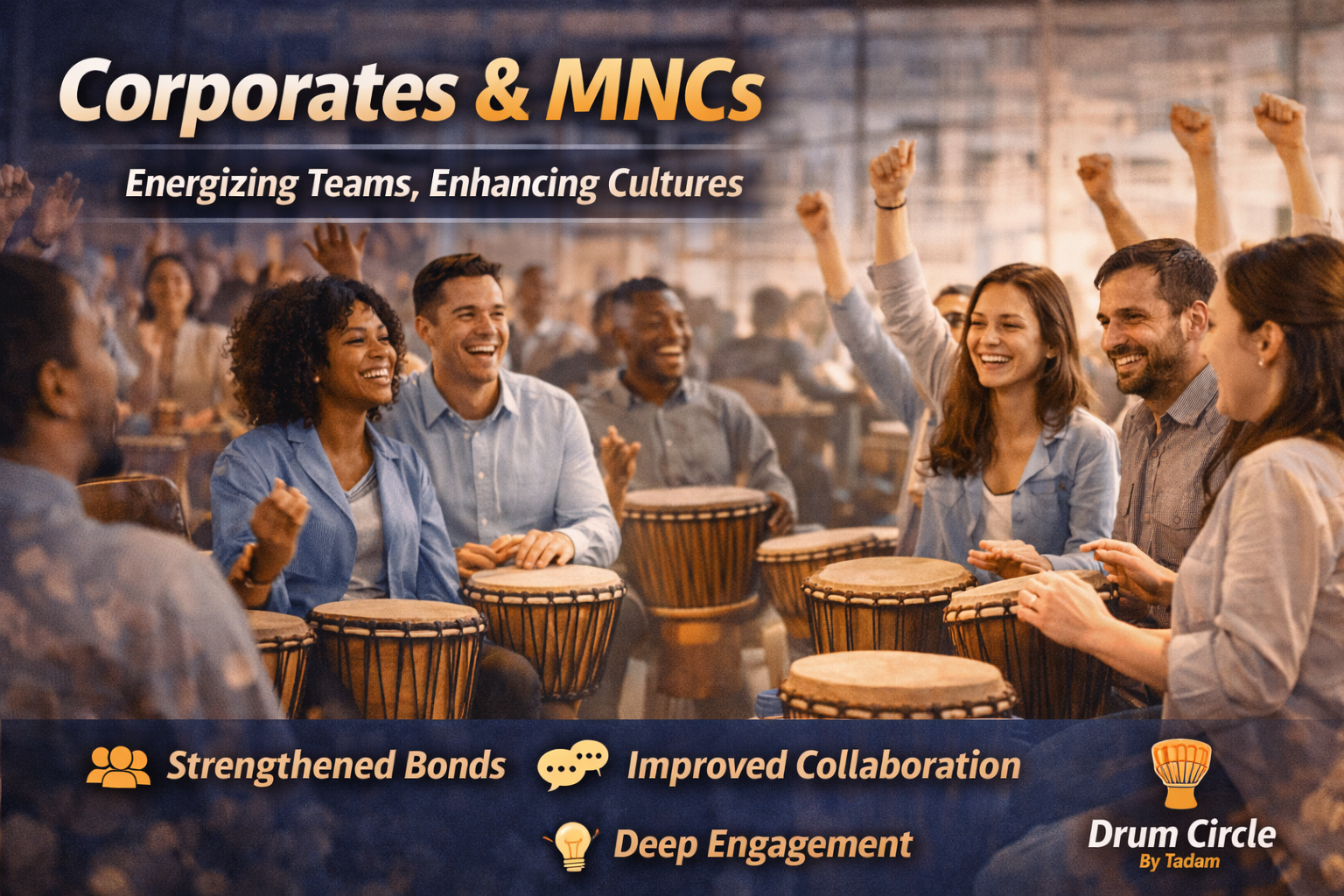 Drum Circle By Tadam is India’s leading force in rhythm-based entertainment, team engagement, and experiential learning. As pioneers of the Djembe drum circle movement, we specialize in high-energy performances and deeply immersive group rhythm experiences that connect people, break barriers, and spark joy. From corporate events and festivals to retreats and community gatherings, we turn every occasion into a celebration of unity, energy, and unforgettable moments